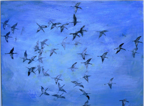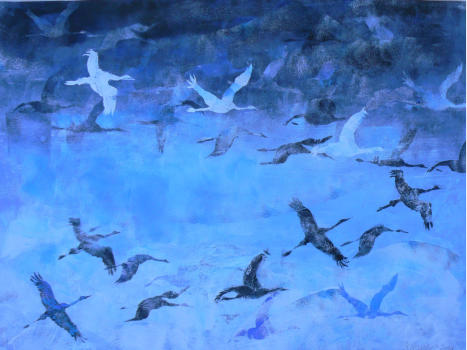 kraanvogels 1 gouache op papier 55x72cm 2019